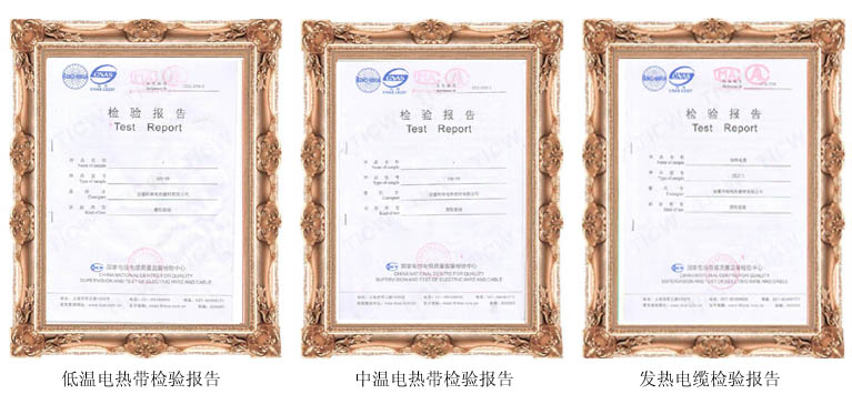 為了保證檢驗報告的權(quán)威性,時效性,針對性。我司熱帶,發(fā)熱電纜產(chǎn)品選擇國家最權(quán)威的檢測機構(gòu)-國家電線電纜質(zhì)量檢測中心進行送檢。經(jīng)過三四個月的檢驗周期,目前我司已重新獲得低中溫自控溫熱帶,發(fā)熱電纜國家電線電纜檢驗報告。所以產(chǎn)品質(zhì)量均達到或優(yōu)于檢測標準,這是對我司近期生產(chǎn)的產(chǎn)品質(zhì)量,包括原材料采購一重要評定。我司將陸續(xù)更新現(xiàn)有公司資質(zhì),做到與時俱進。