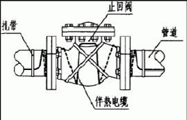 4)直線平行安裝時,伴熱電纜應沿彎頭凸面安裝,并在彎頭的兩端及中間作固定 |