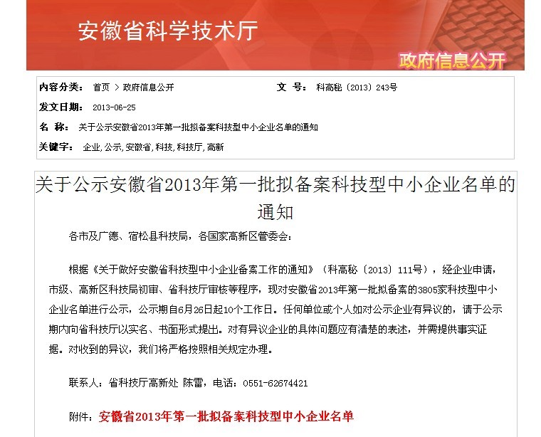 根據(jù)《關于做好安徽省科技型中小企業(yè)備案工作的通知》(科高秘〔2013〕111號),經(jīng)企業(yè)申請,市級、高新區(qū)科技局初審、省科技廳審核等程序,安徽環(huán)瑞入選2013年第一批備案科技型中小企業(yè)。