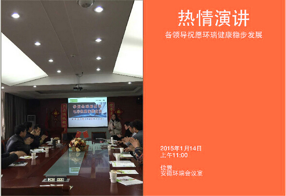 2015年1月14日新年伊始,環(huán)瑞迎來了新疆烏蘇市相關(guān)領(lǐng)導蒞臨考察,烏蘇市相關(guān)領(lǐng)導在環(huán)瑞董事長計成志陪同下參觀了環(huán)瑞電伴熱帶、發(fā)熱地席和環(huán)瑞現(xiàn)代化展廳,并在環(huán)瑞會議時聽取環(huán)瑞員工對環(huán)瑞未來發(fā)展的相關(guān)介紹。