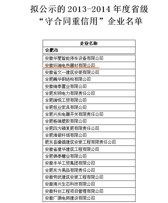 正因為環(huán)瑞一直講究誠信,遵守合同從而受到了客戶的廣泛好評,環(huán)瑞電伴熱公司也因此榮獲了安徽省2013-2014年度省級“守合同重信用”企業(yè)稱號。