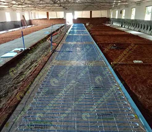 發(fā)熱電纜養(yǎng)殖保溫系統(tǒng)是將220V電源連接埋置在混凝土中的發(fā)熱電纜,發(fā)熱電纜發(fā)熱,將熱量傳至混凝土中并儲熱,然后熱量由混凝土通過熱輻射的形式向上緩慢均勻釋放,從而達到下暖上涼的采暖效果。