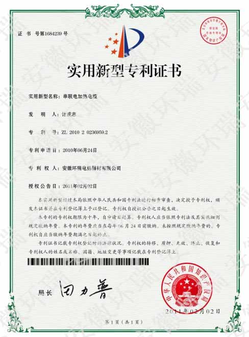 安徽環(huán)瑞串聯(lián)恒功率電伴熱帶國(guó)家電熱帶專(zhuān)利產(chǎn)品介紹